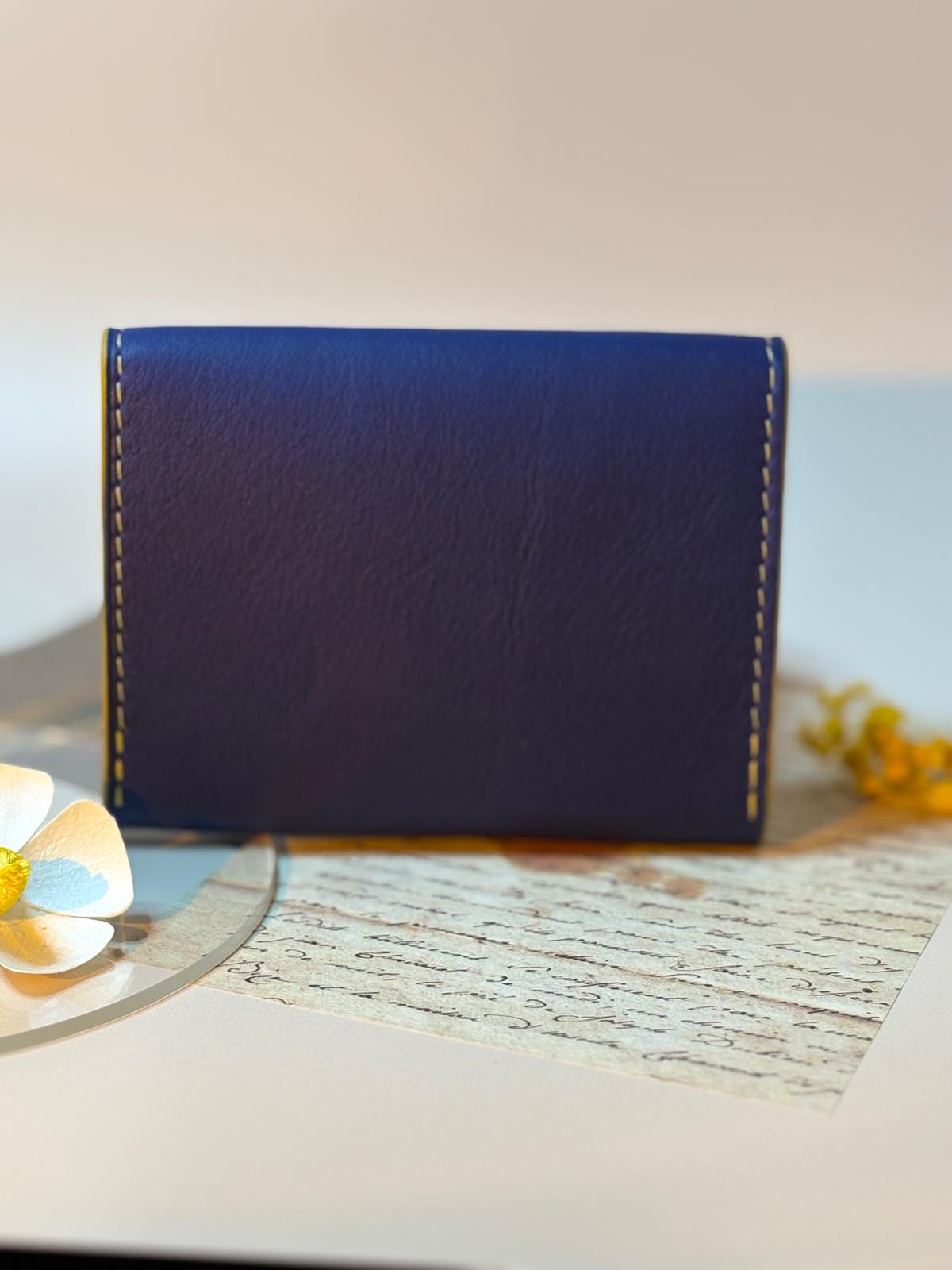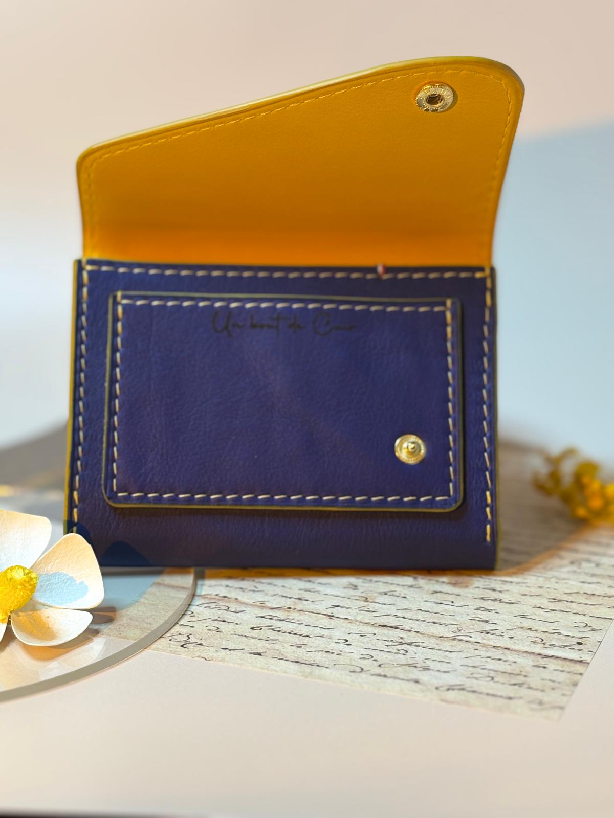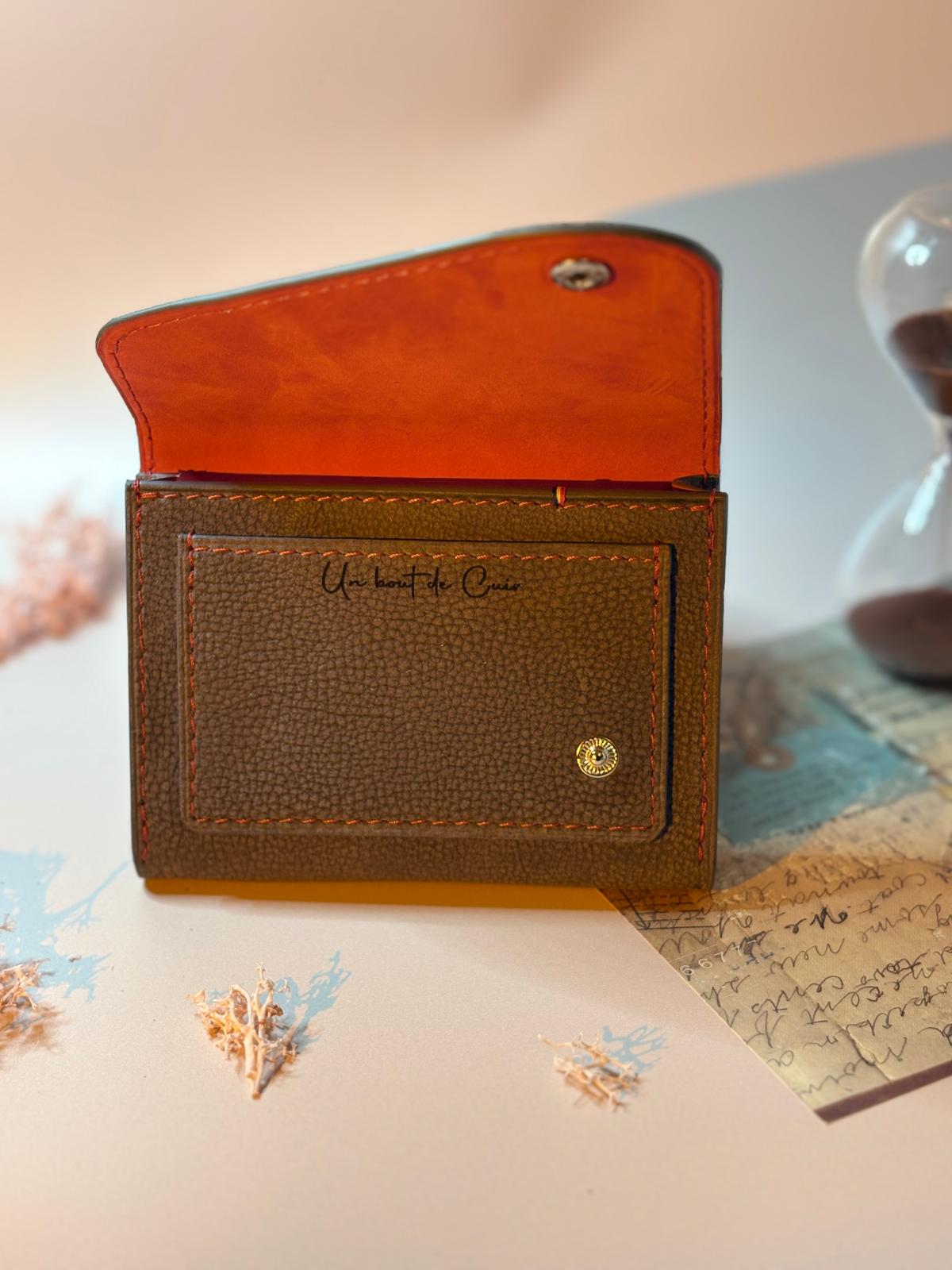 Le portemonnaie Déméter comporte un grand compartiment avec un petit soufflet de chaque côté pour y ranger billets et monnaies. Il se ferme grâce à un rabat maintenue par une pression, Une poche pour la carte bleue est prévu sur l’arrière pour qu’elle soit rapidement accessible.