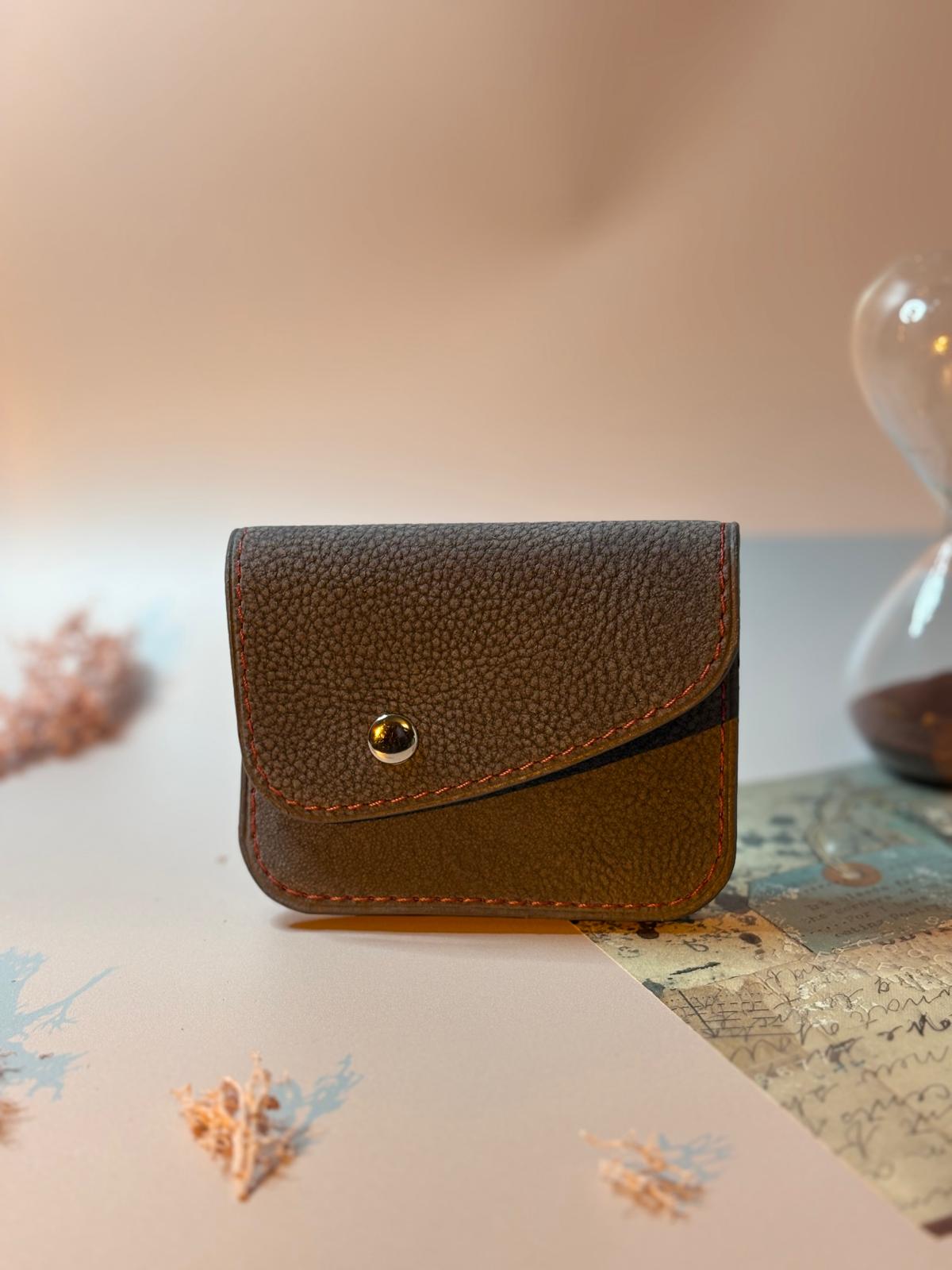 Un petit portemonnaie compact et pratique, avec sa poche sur l’arrière pour votre carte bleue à portée de main, deux compartiments à l’intérieur dont une avec un petit rabat pour y ranger vos pièces et une autre libre pour accueillir vos billets. Il se ferme grâce à une rabat maintenue par une pression.