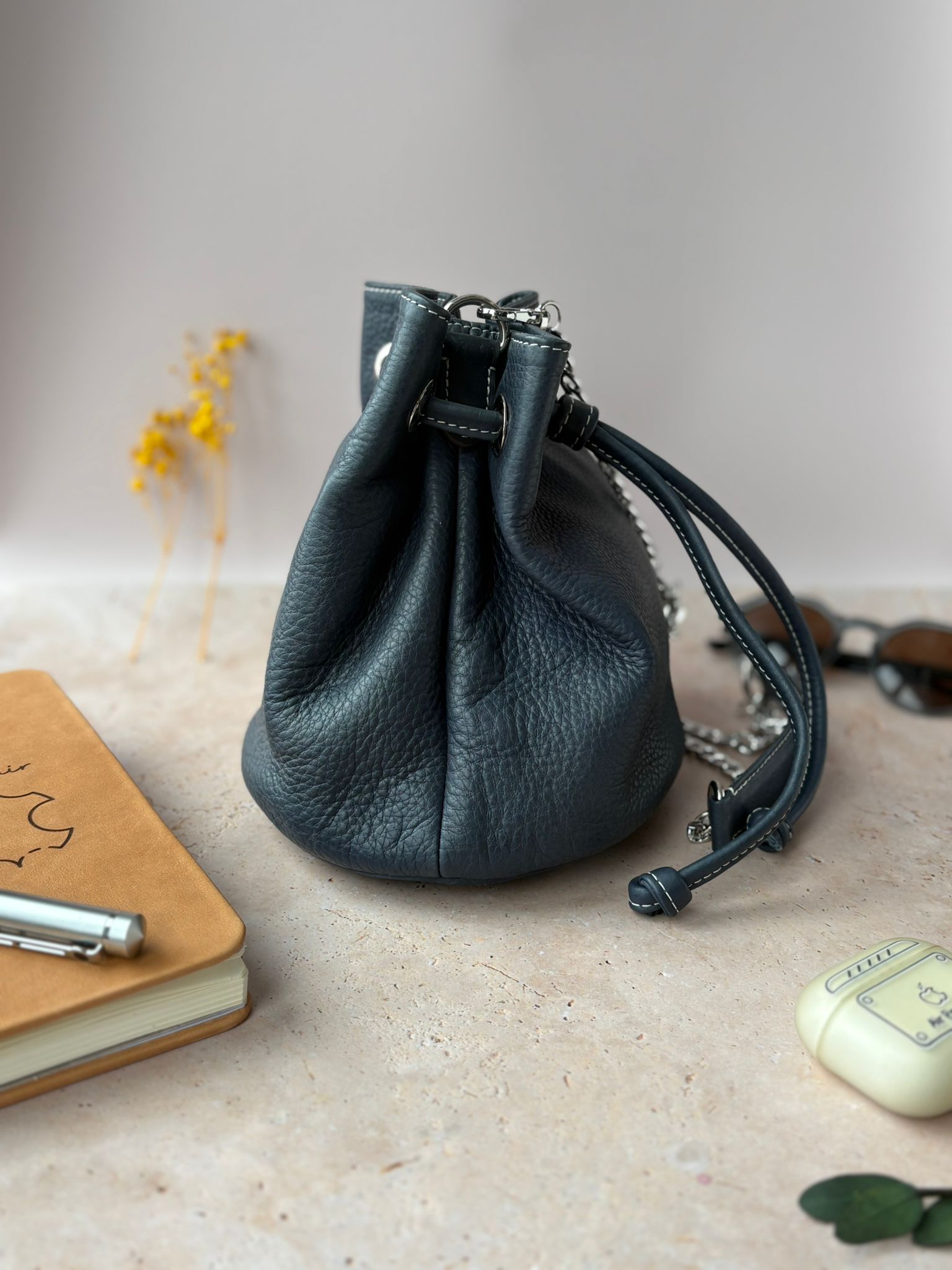 Fabriqué à la main dans mon atelier, chaque sac seau est une pièce unique, fruit d’un savoir-faire artisanal. Un accessoire qui reflète votre personnalité.