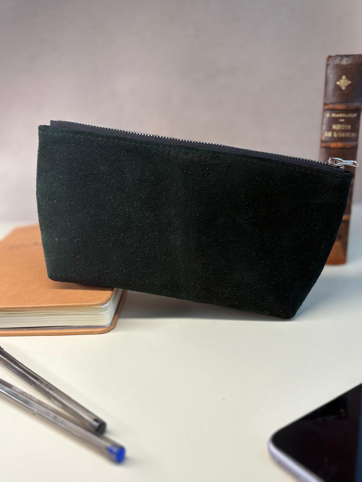 Confectionnée à la main dans un cuir de haute qualité, elle offre désormais un volume généreux pour organiser sereinement vos objets volumineux : chargeurs, maquillages, sets complets de dessin ou accessoires tech.